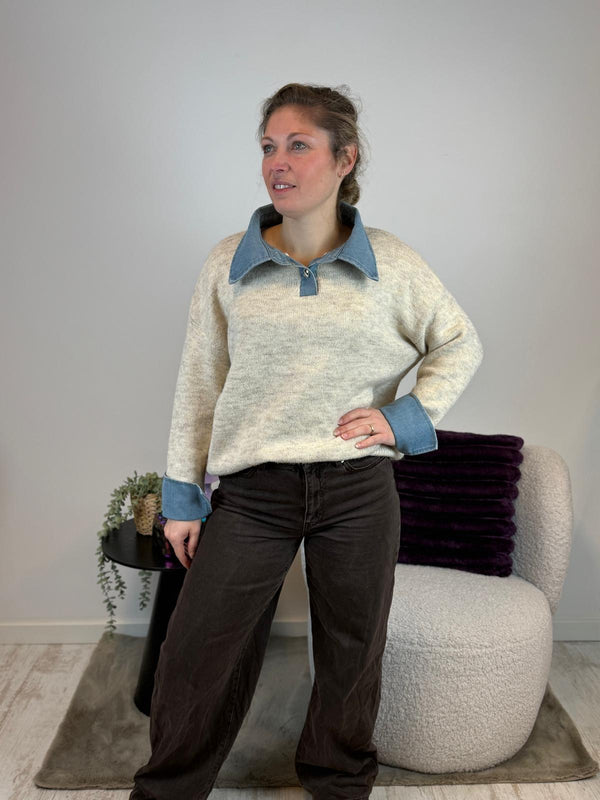 Claire - Trui met spijkerstof kraag πŸ”·